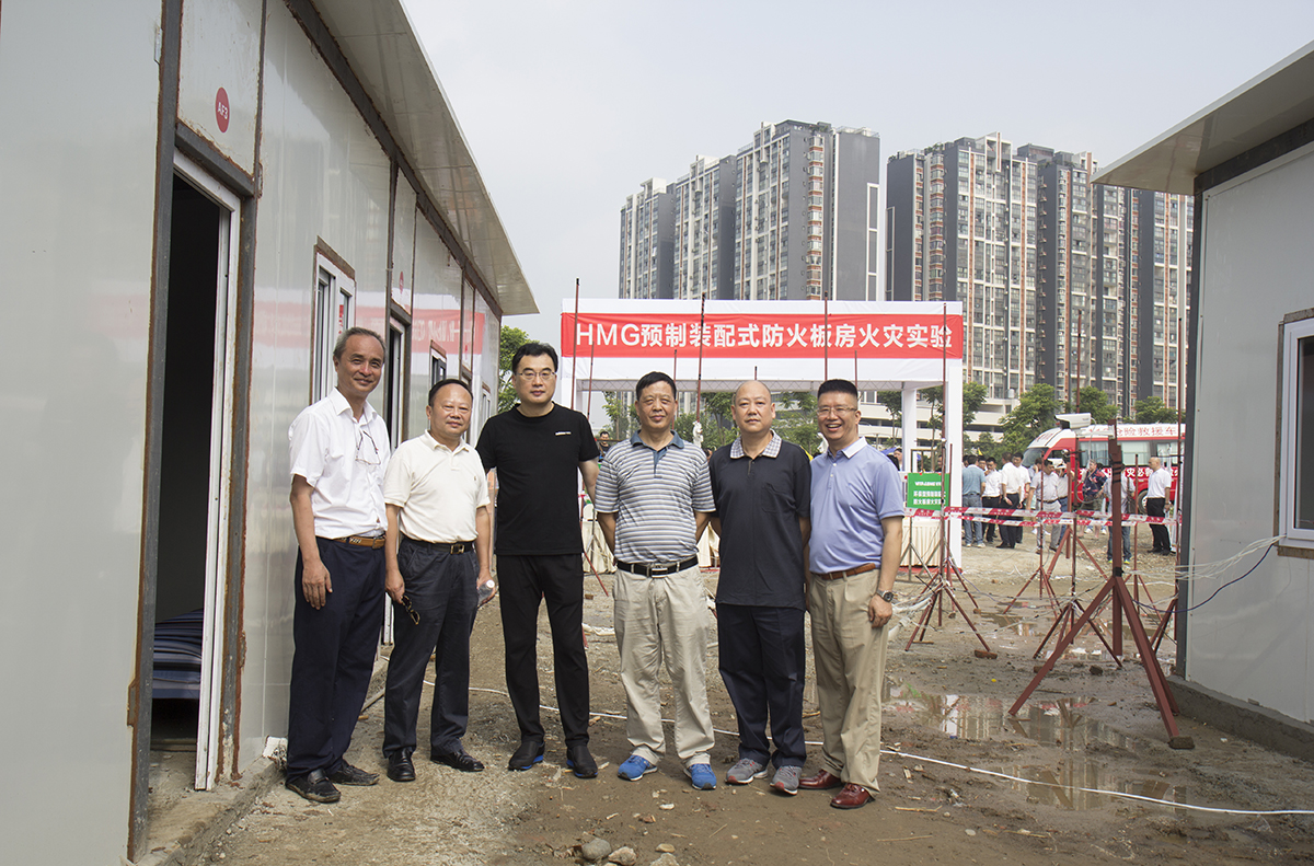 2017年7月15日,国家标准《灾区过渡安置点防火规范》编制组在成都高新区成功地进行了HMG预制装配式防火板房火灾实验,测取了相关数据。威特龙消防安全集团股份公司会同公安部消防产品合格评定中心、四川省公安消防总队和重庆大学等单位主持实验。公安部消防产品合格评定中心东靖飞主任亲自参与制订实验方案并全程指导实验,成都铁路公安局及消防处领导专家现场观摩指导实验。